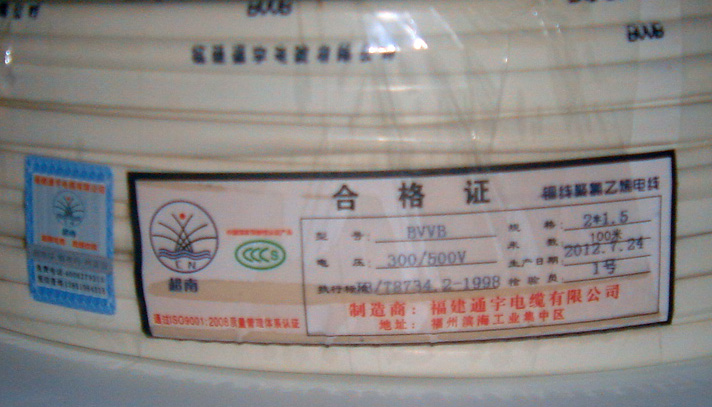 BVVB 銅芯聚氯乙烯絕緣聚氯乙烯護(hù)套平型電線,就是2根BV線,在加一層白色的護(hù)套